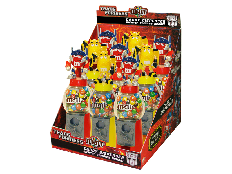 Item 9003: Your favorite M&M Characters Red and Yellow decked out as Transformers on these cool dispensers. Includes 4 fun size packs of M&M's. Packed 6 dispensers per case.