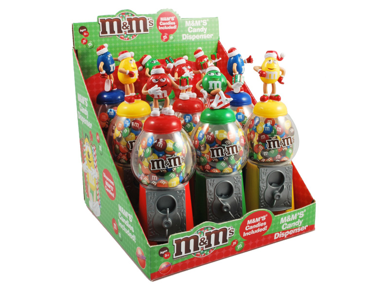 Item 52203: This 9" tall M&M Christmas dispenser is the perfect gift for the M&M collector in your family! Includes a fun size bag of M&M's. Packed (4) 9 count displays per case.