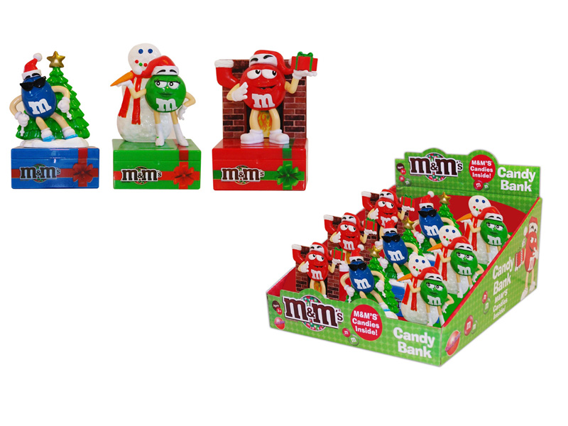 Item 55205: Your favorite M&M's characters sit atop these fun Christmas banks! M&M's inside! Packed (6) 12 count displays per case.