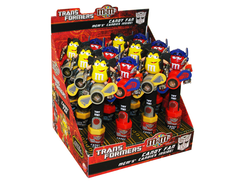 Item 8597: Your favorite M&M Red and Yellow characters as cool Transformers on these powerful, child-safe fans. Mini pack of M&M's inside. Packed (6) 12 count displays per case.