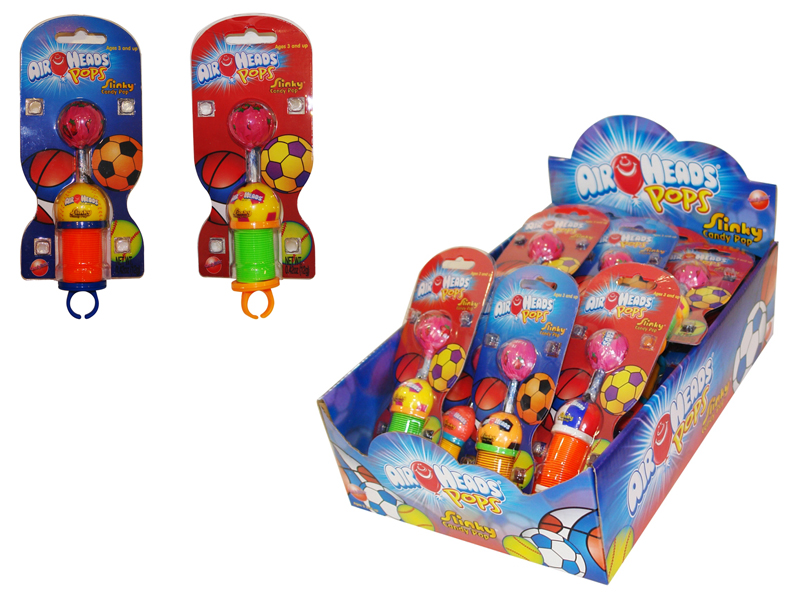 Item 7132: This fun sports themed slinky can be worn as a ring! Airheads sucker attached. Packed (6) 24 count displays per case