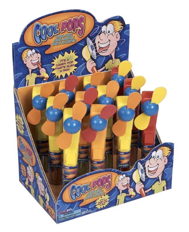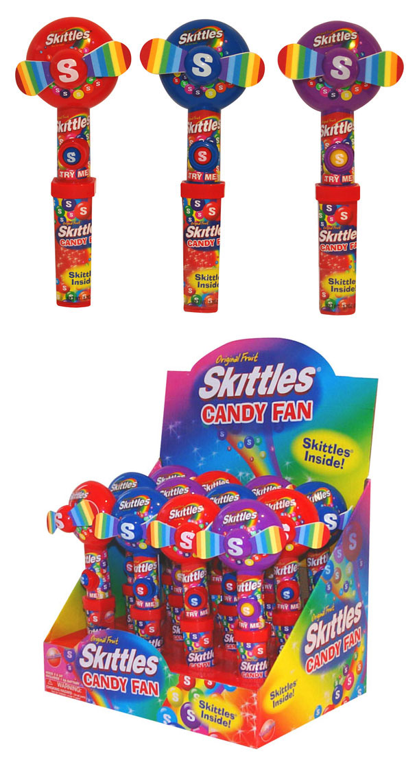 Item 10016: Taste the rainbow! Powerful, child-safe fan, Skittles in the handle. Packed (6) 12 count displays per case.