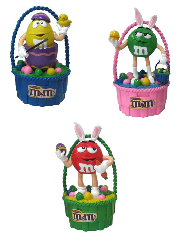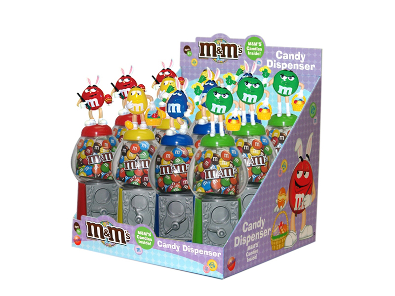 Item 52261- Your favorite M&M characters in their Easter best on top of these 9" M&M dispensers! Includes 1 fun size back of M&M's. Packed (4) 9 count displays per case.