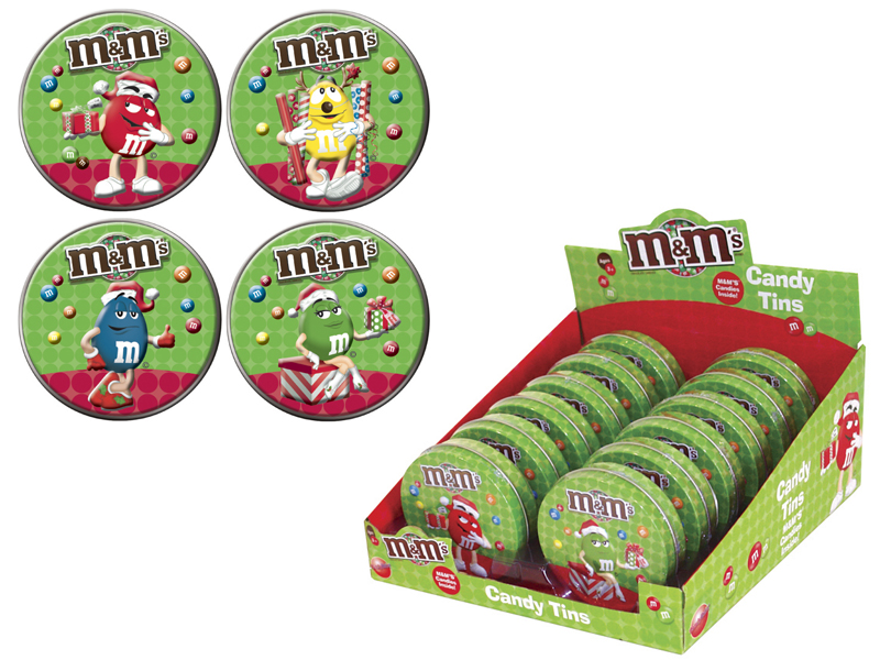 Item 57764: Your favorite M&M's characters featured on these cool embossed Christmas tins. 2 mini packs of M&M's inside. Packed (6) 12 count displays per case.