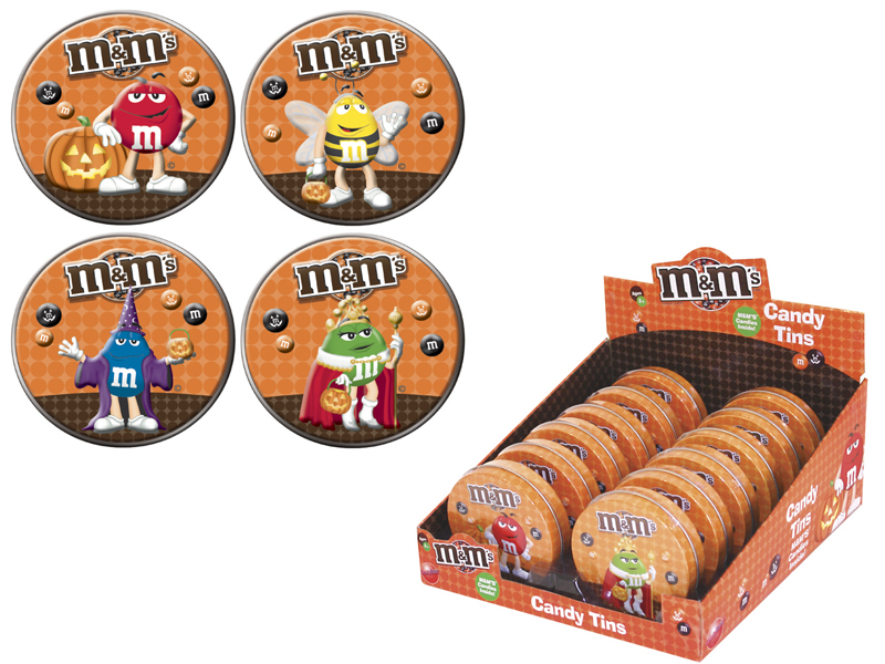 Item 57795: Your favorite M&M's characters featured on these cool embossed Halloween tins. Mini pack of M&M's inside. Packed (6) 12 count displays per case.