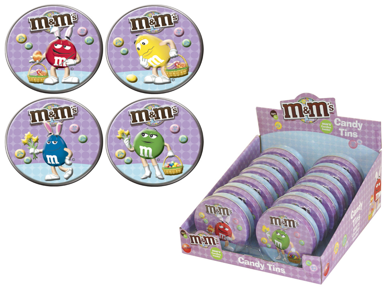 Item 57733: Your favorite M&M's characters featured on these cool embossed Easter tins. 2 mini packs of M&M's inside. Packed (6) 12 count displays per case.