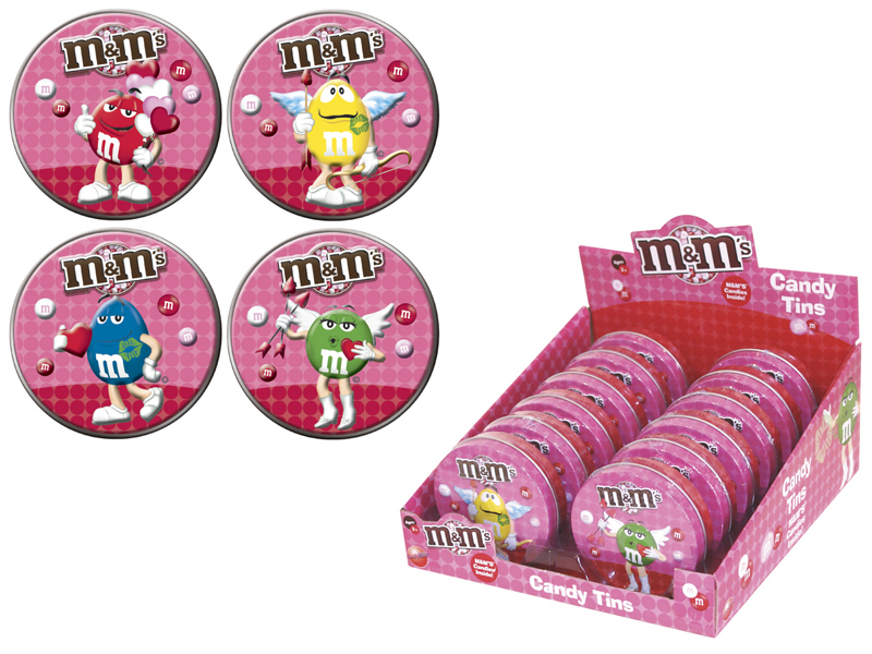 Item 57702: Your favorite M&M's characters featured on these cool embossed Valentines tins. 2 mini packs of M&M's inside. Packed (6) 12 count displays per case.