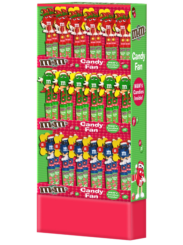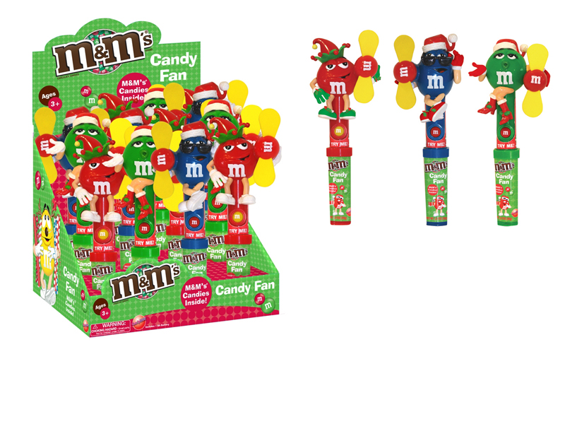 Item 59188: Everyone's favorite M&M characters dressed up for Christmas with a powerful, child-safe fan. M&M's in handle. Packed (6) 12 count displays per case.