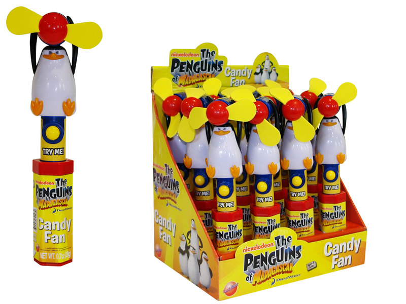 Item 12230: Cool off with these Penguins of Madagascar fans! Includes microbites candy in the handle. Packed (6) 12 count displays per case.