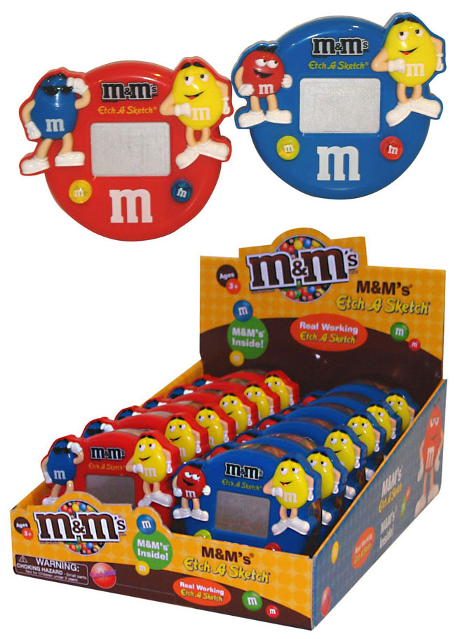 Item 10160: This M&M Etch A Sketch really works! Mini M&M's pack located in the back. Packed (6) 12 count displays per case