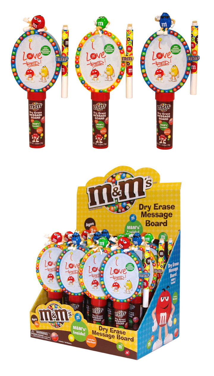 Item 10139: Write On, Wipe Off- M&M dry erase Message Board with a mini M&M's pack in the back. Packed (6) 12 count displays per case
