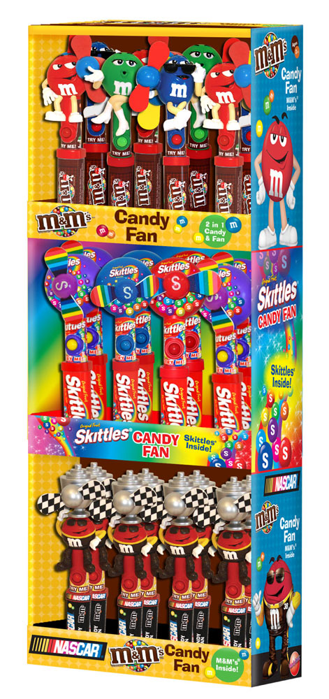 Item 10108: Your favorite M&M characters featured with powerful, child-safe fans. M&M's in the handle. Packed (6) 12 count displays per case.
