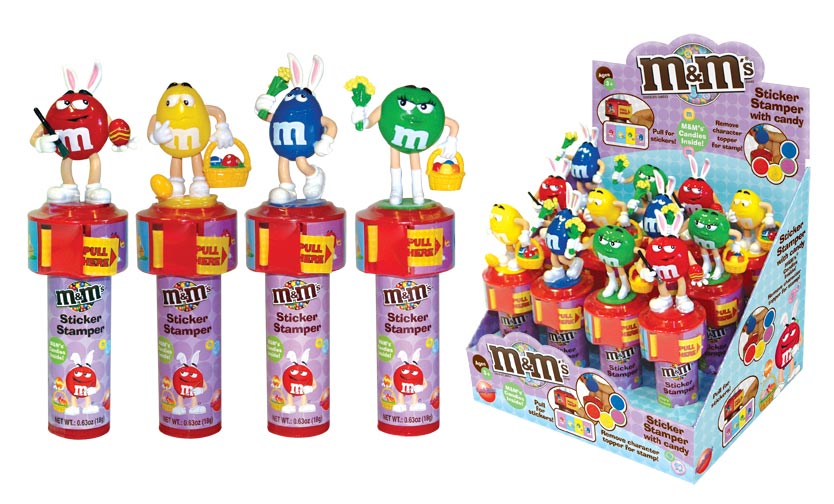 Item 59577: Everyone's favorite M&M characters dressed in their Easter best, includes stickers and an inked rubber stamper. M&M's in handle. Packed (6) 12 count displays per case.