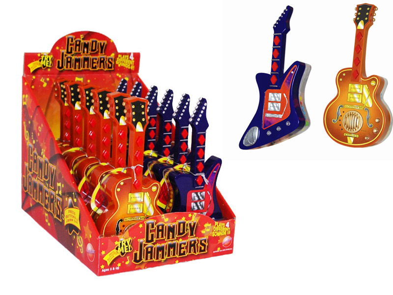 Item 6043: Rock or country model, these guitars jam! Packed with micro bites candy in the back. Packed (6) 12 count displays per case